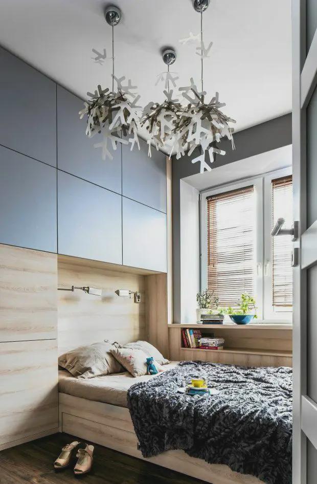 镶入式的衣柜增加了空间利用率,更是使房间视觉效果更为整齐。推拉门更是加倍节省了空间,简直是小户型的装修利器。