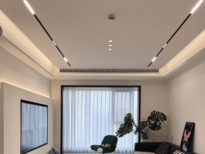 再看现在年轻人的做法,是采取的无主灯设计。主要是使用了筒灯,射灯,轨道灯,磁吸灯,并搭配有灯带,营造无主灯。