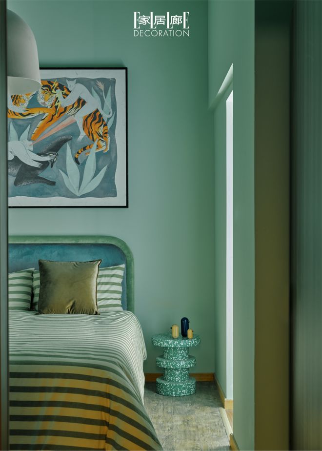 绿,是Heddy钟爱的颜色,也被他用到了整个次卧里,色彩与线条带出家的复古与摩登,成为空间里亮眼所在。“我希望每一个住进来的人,都能感到放松、自由;在这里,时间可以有片刻的停滞,精神能够更加充盈。”Heddy说道。