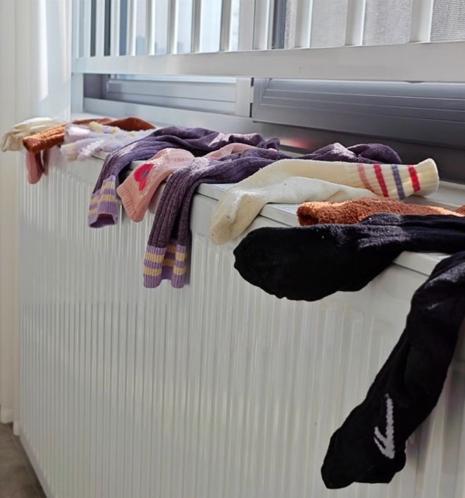 现在家里有软水机,再加上这暖气片晾袜子,每天穿上时都是又软又暖和,也是真的又方便又舒服。