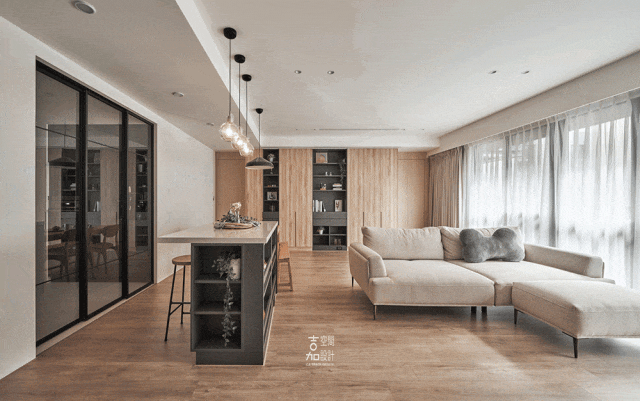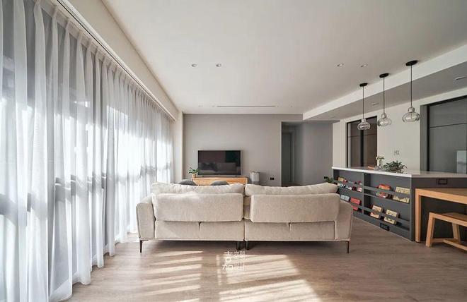 客厅后方多功能柜体完美融合收纳与隐藏性