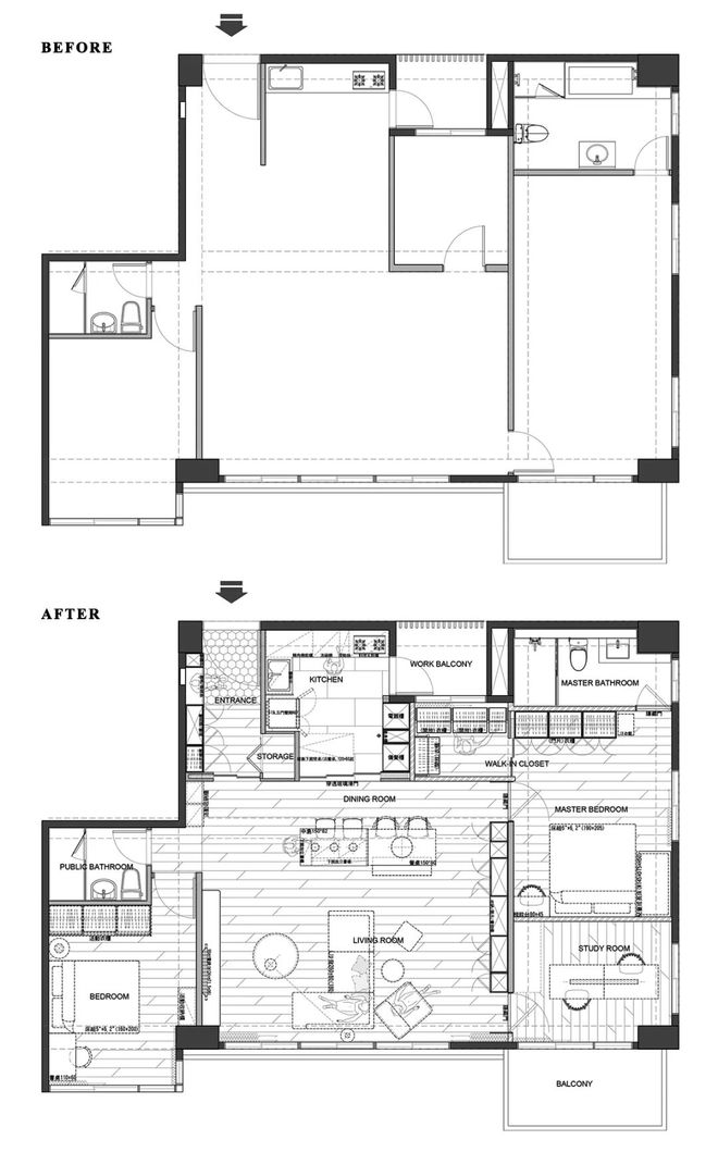 同时巧妙将原本的管道间柱子围塑成设计元素