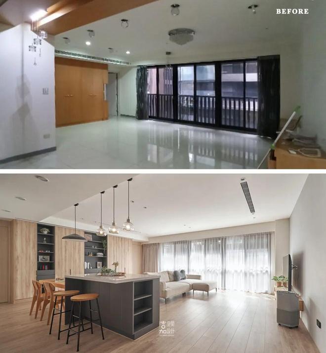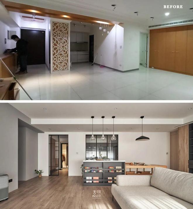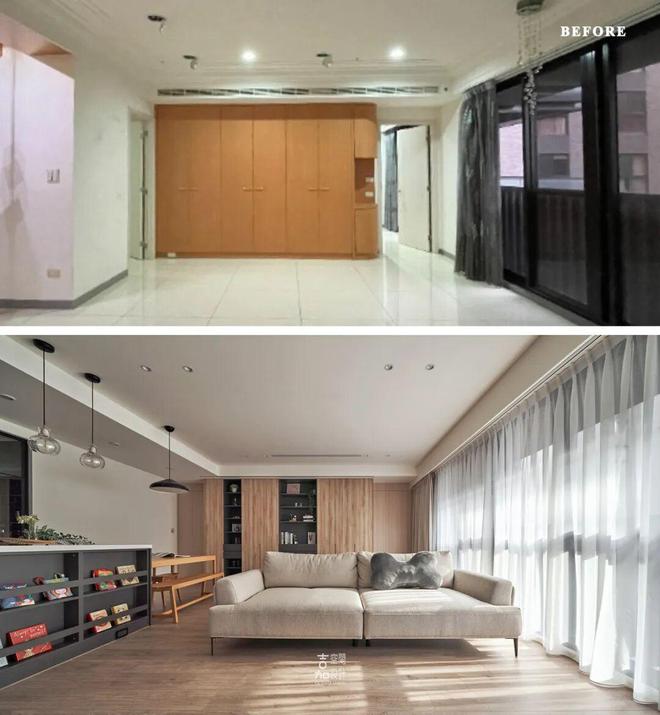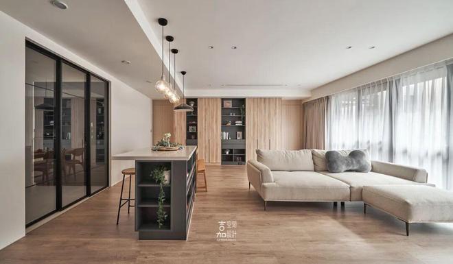 从最初的温润木头色改为黑偏黑灰色系的板材