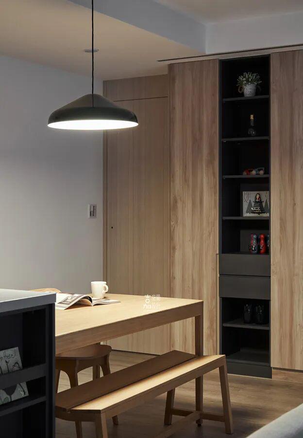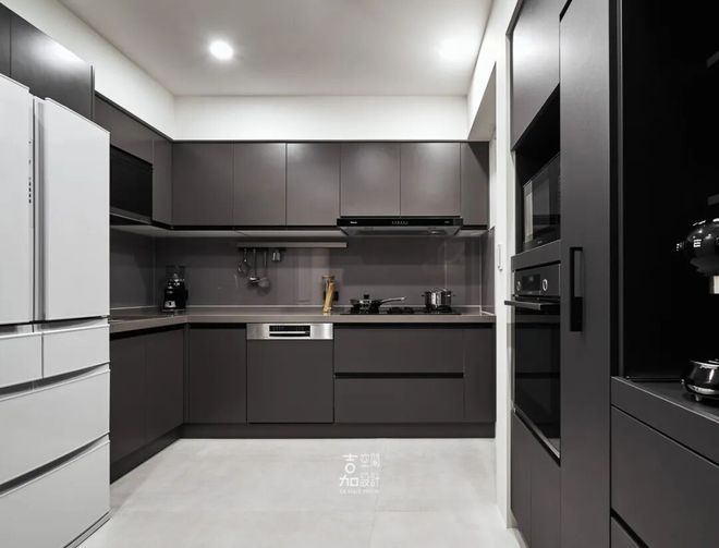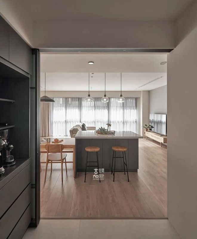 这种深沉色调赋予了餐厨区现代且沉稳的调性
