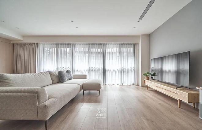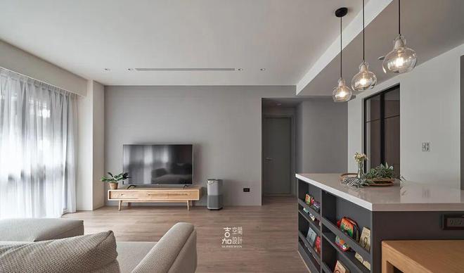 灰色乳胶漆的电视主牆,奠定沉静基底