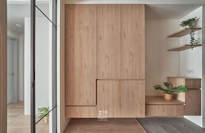 从最初的温润木头色改为黑偏黑灰色系的板材