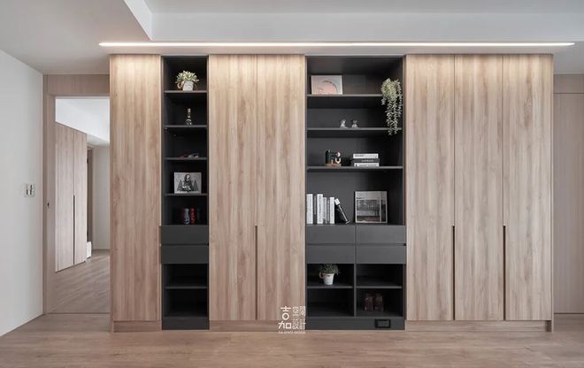 客厅后方多功能柜体完美融合收纳与隐藏性