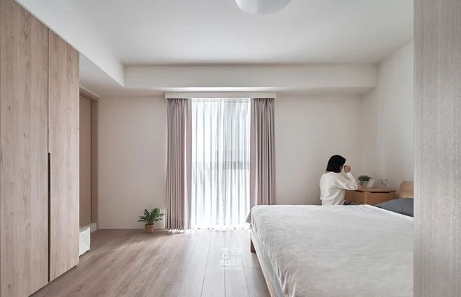 更衣室与主卧之间的区隔,选用喷砂玻璃拉门
