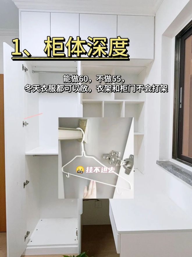 根据《住宅设计规范》,衣柜的深度能做60公分,不做55公分,这样即使是较宽的衣物也能轻松放入,不会影响柜门的关闭。深足够的衣柜,让你的收纳更加自如,同时满足95%以上成年人的使用需求。
