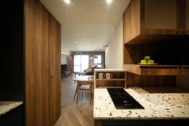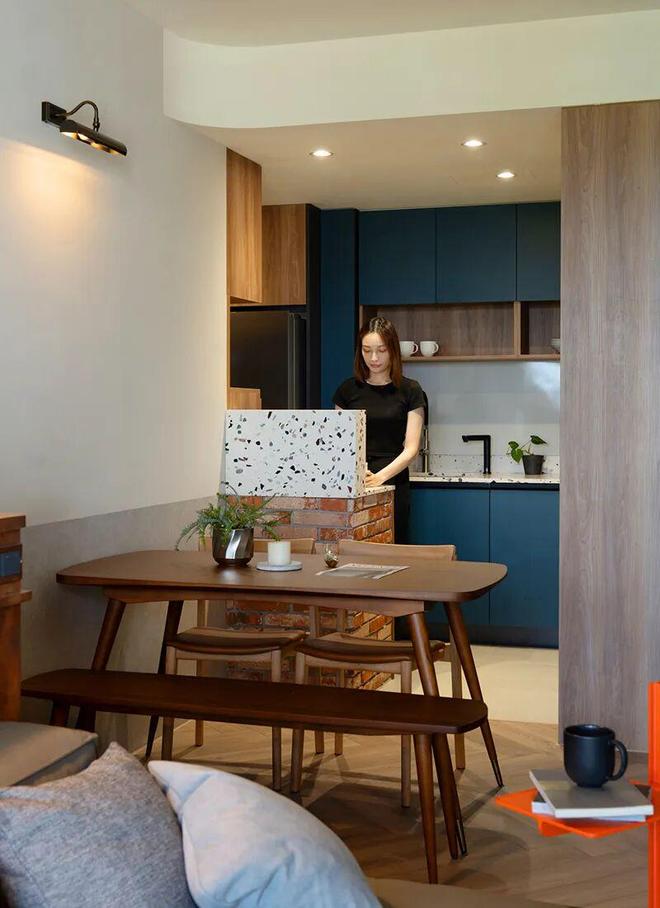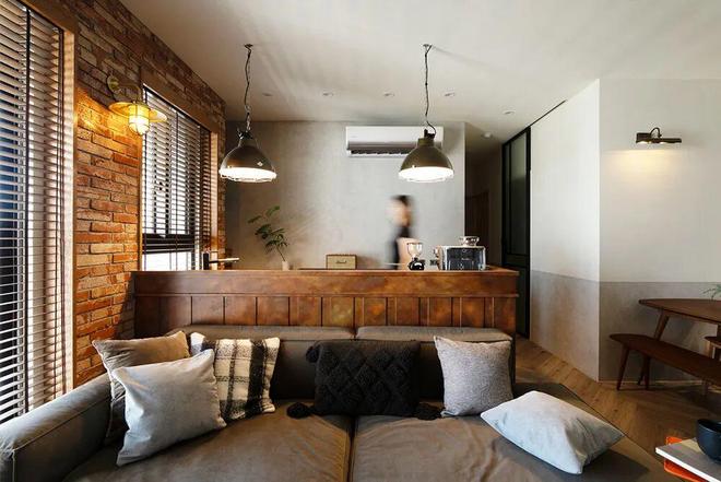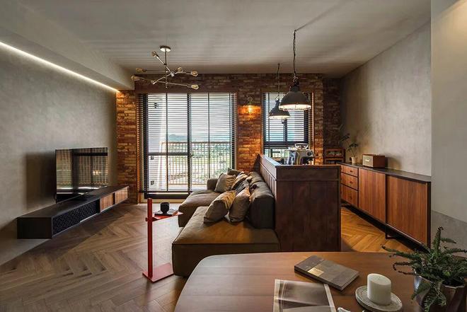 客厅整片牆的红砖砌造,若是选用传统厚砖