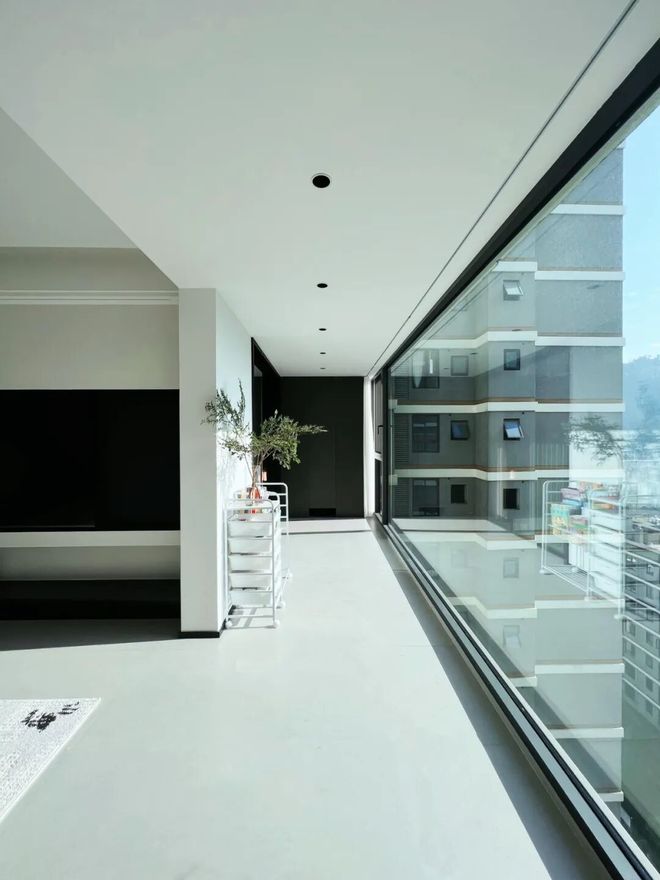 而大玻璃窗则最大程度减少了窗框对光线的阻隔,让阳光毫无遮挡地射入室内,使光线更加均匀充足,营造出更加明亮的居住氛围。