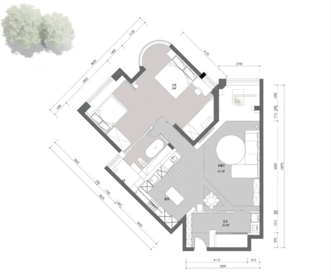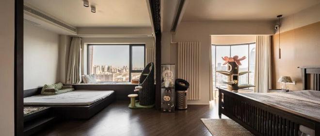 原户型是异形房,私密性不够存在一些空间浪费,经过设计师调整后,拆除掉部分墙面对户型空间进行了优化,同时还增加了猫咪洄游动线,实现空间灵活切换,整体更通透实用。