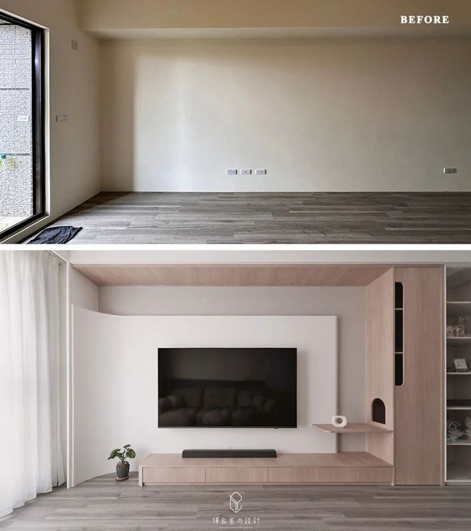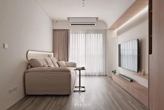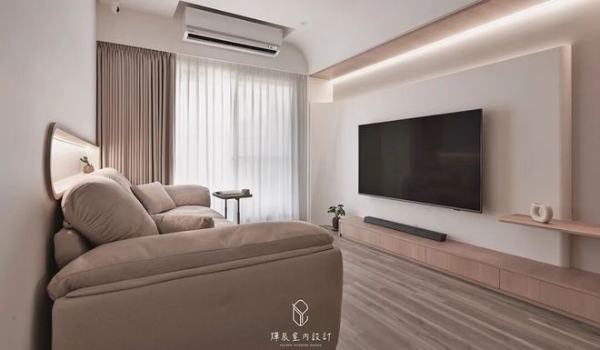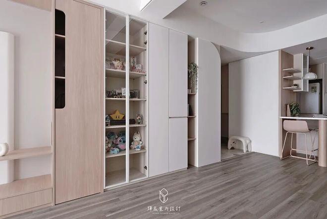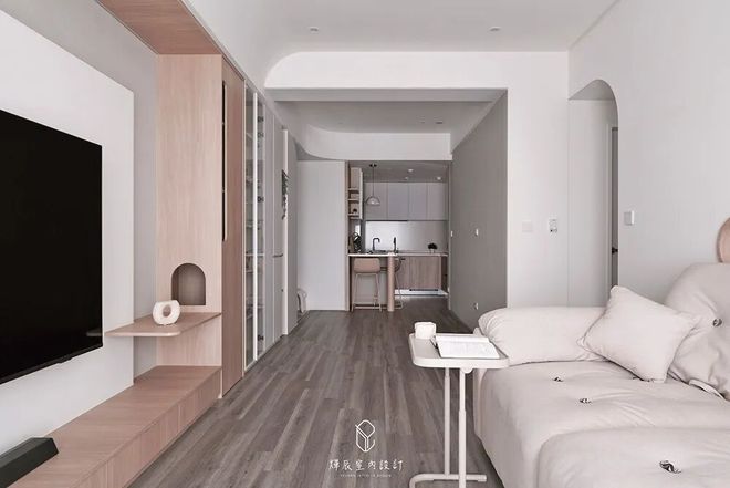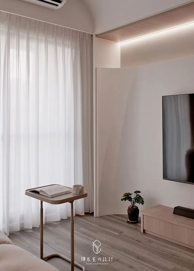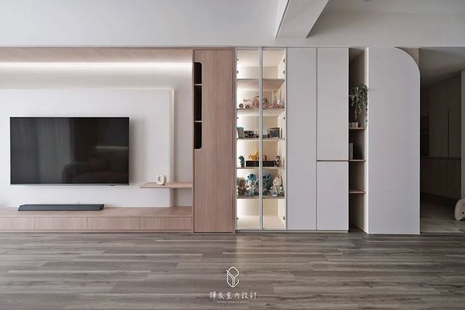 其柔润木纹造型,呼应了客厅的圆弧设计空间