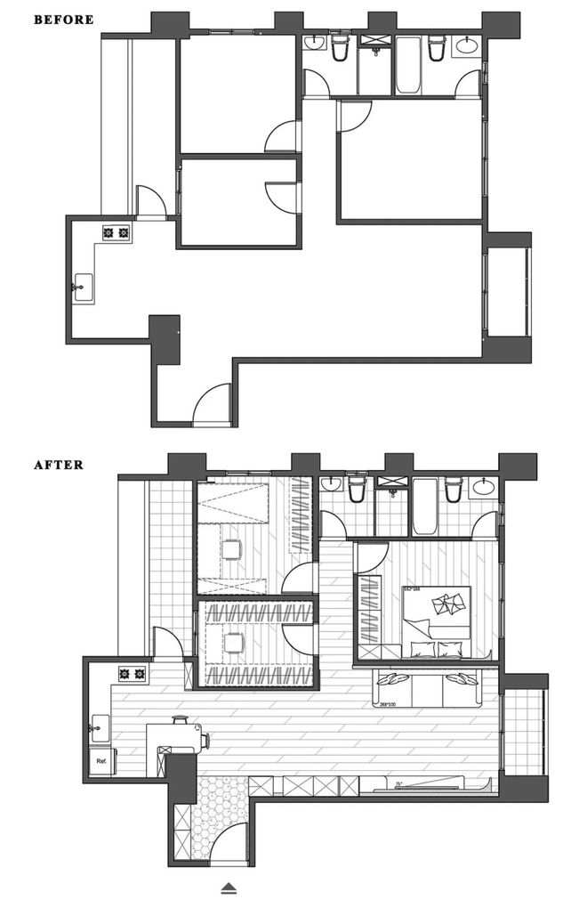改为大家坐的方式,让两人都能拥有各自宽敞的自在感