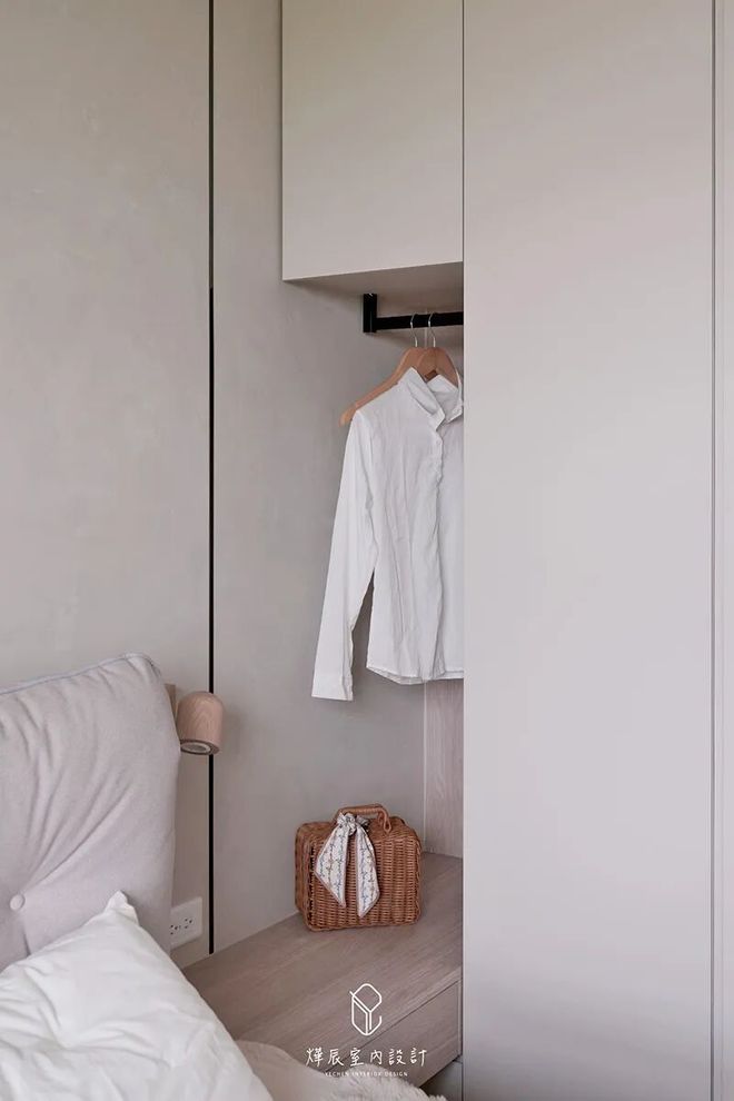 并顺势与收纳柜的包梁细节衔接至天花板,使视觉更加连贯