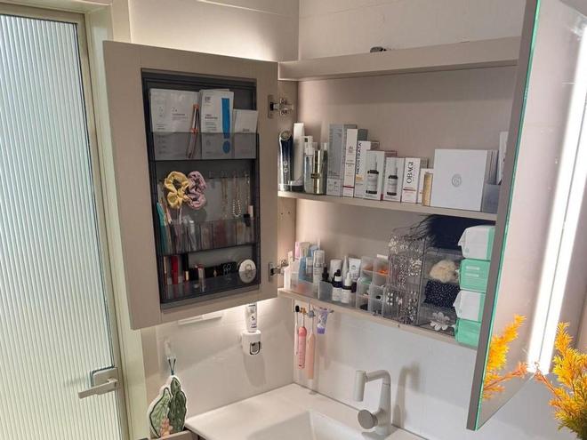 如果安装了镜柜灯,能够提供面部没有阴影的照明,无论是洗漱护肤,化妆,都能看得很清楚了。