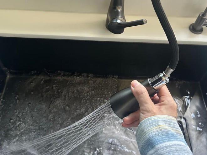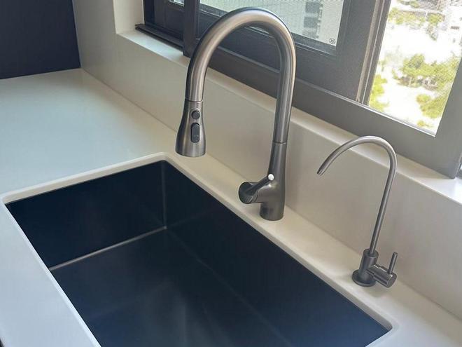 第三个奉劝大家一定不能落下的升级装修设计:厨房安装大单槽,配上抽拉水龙头。