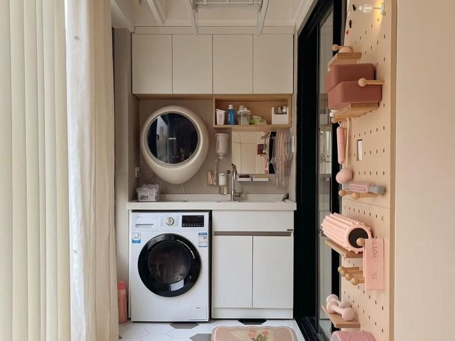第五个奉劝大家千万不能落下的升级装修设计:阳台家政柜和洗衣区一体化装修设计。