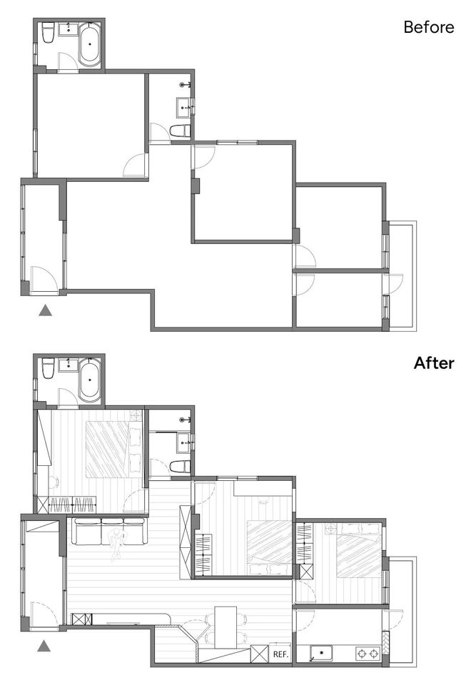 铺上仿清水模雾面灰系磁砖,营造日系温馨感