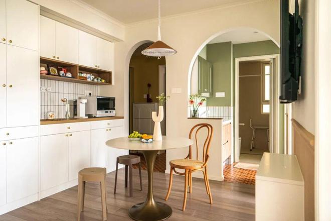 【灵活的隐私边界】:父亲区域与餐厅之间采用隐形折叠门,闭合时保障父亲休息的私密与宁静,开启时则让空间完全融会贯通。