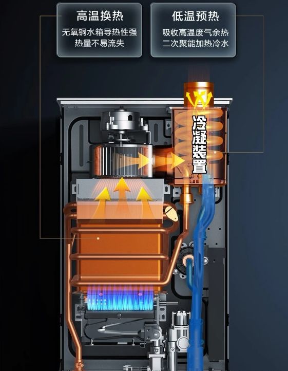 你可以把上述方法想成:别的燃气热水器是把冷水倒进内胆里,计算冷水获得的热量与火焰热量的比值。一级能效的燃气热水器是先把冷水加热,再倒进内胆里,计算冷水两次加热获得的热量和火焰热量的比值。