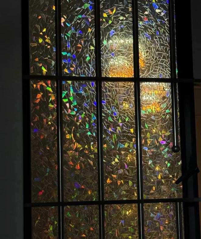 比如:这个马赛克玻璃贴,如厕的时候,能看见七彩的光啊。