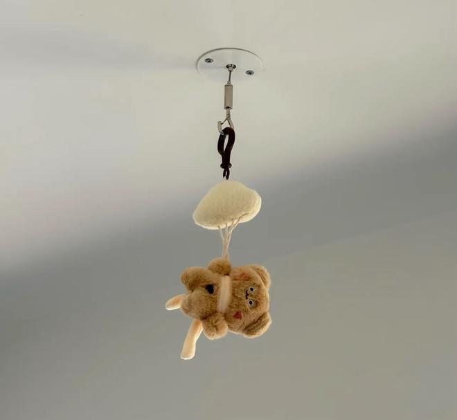 小熊部分,就大家随意发挥了,自己家闲置的玩偶,也可以挂。然后用磁吸挂钩吸住装饰盖,再挂小熊,操作更方便,效果也会更好。
