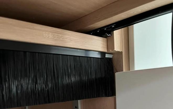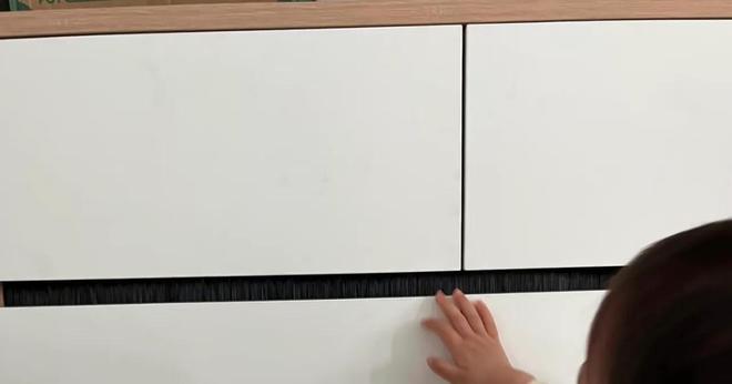 大家如果家里也有这个免拉手挡板太高,影响柜内空间的问题,也可以用这个方案,直接拆掉免拉手挡板,回家自攻丝把这个毛刷拧上去即可。