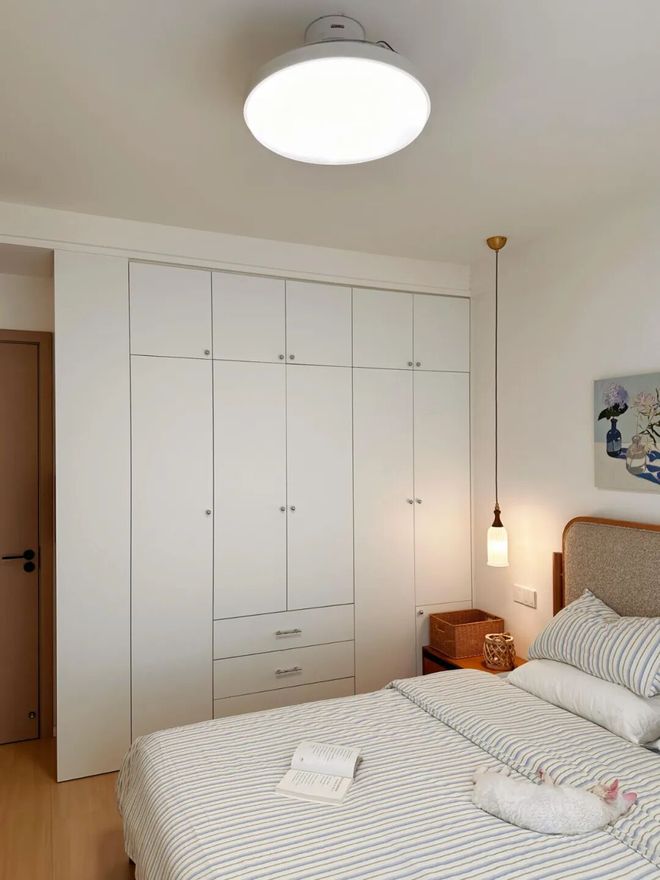传统的卧室布局,都会将衣柜放在床头一侧,为床尾释放出更多的空间,让日常动线更加舒适。