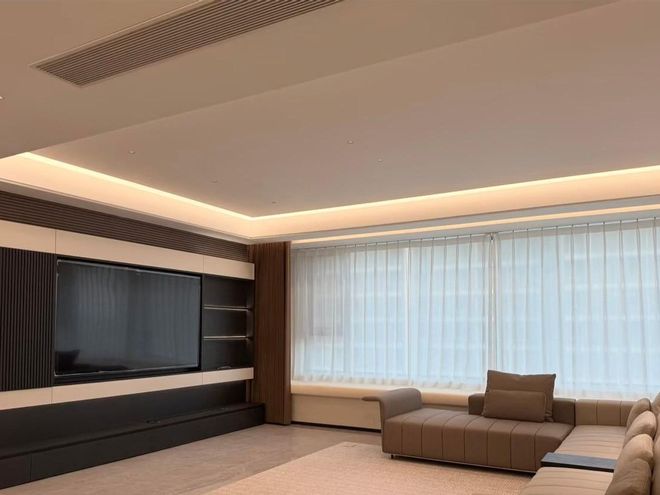 全屋灯光分层设计,就是放弃单一主灯,而是采取了基础照明加重点照明,再加上氛围照明的组合。