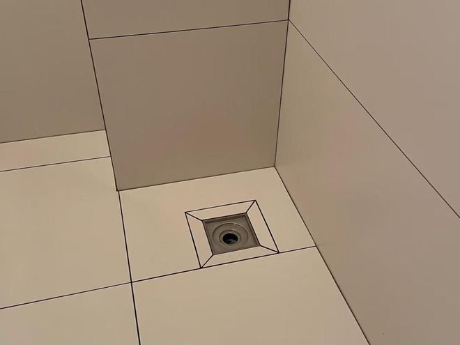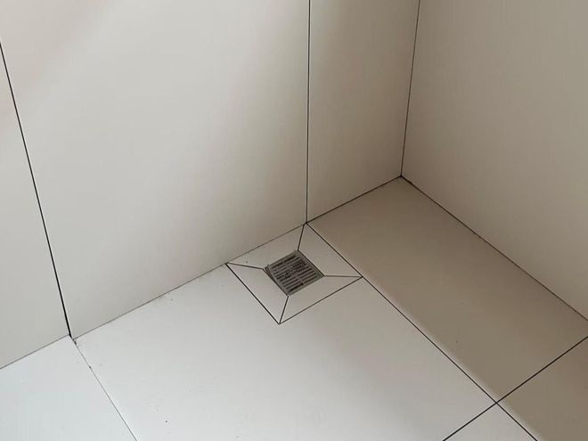 做法建议:大家千万不要小看这个地漏排水的细节。如果是一个不合格的地漏或者是排水方式,会让你每次洗澡都是水漫金山。在贴完瓷砖以后,要亲自验收,倒水测试排水速度。