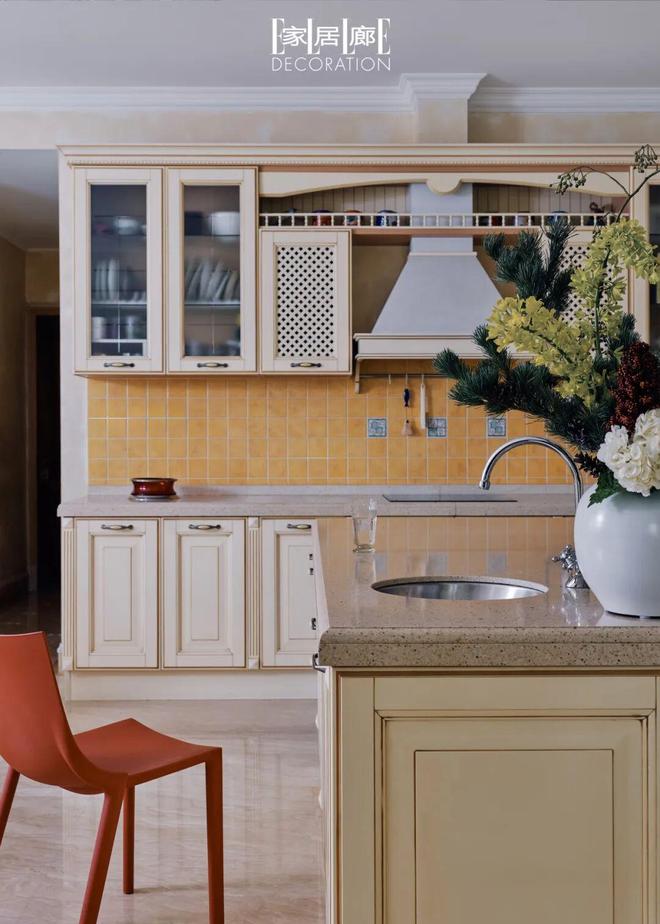 橱柜来自法国品牌Mobalpa,红色椅子来自Driade。