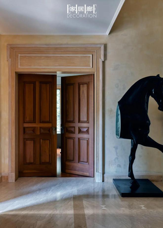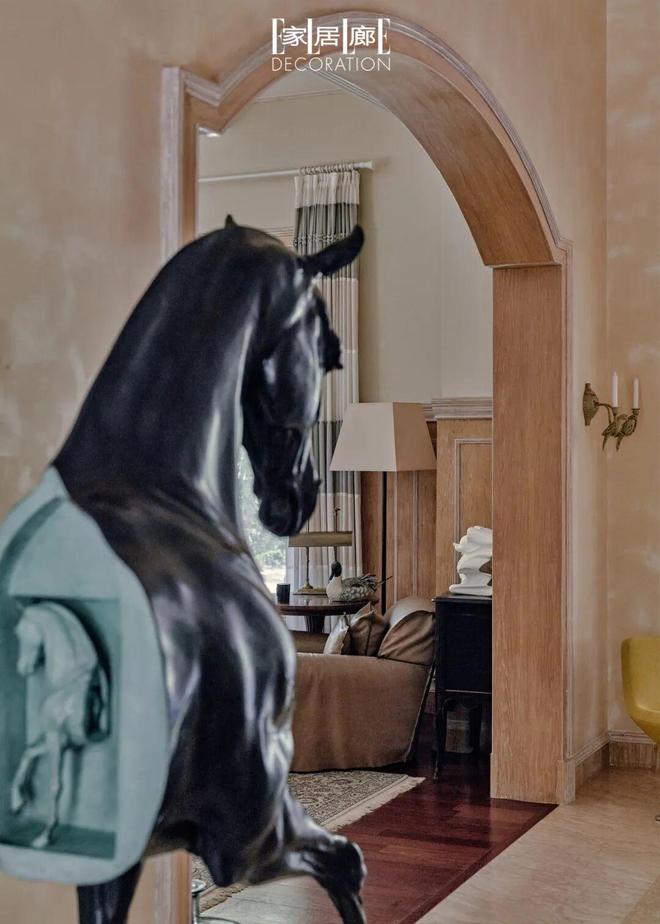 空间入口的光影与“半马”青铜雕塑奠定了整个家的主旋律。