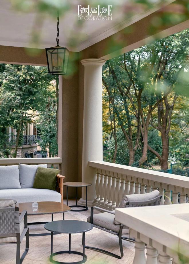 走进这栋位于上海近郊的庄园式大宅,仿佛进入了一部长篇叙事。这是一栋自带独立花园与泳池的独栋别墅,地面两层,地下一层,庭院里古树成荫,绿荫如盖,隐蔽性极佳。它有着托斯卡纳式的红陶瓦屋顶与浅米色石墙,对称的立柱与栏杆延续着新古典主义的秩序感。石材砌面与周围环境呼应,大面积落地窗与环绕露台营造出内外流动的生活场景。