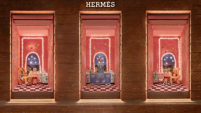 本次创作中,艺术家延续其标志性编织手法,又辅以童趣涂鸦和符号拼贴,渲染普罗旺斯的节庆意象、斑斓色彩与家的温度。男性世界橱窗邀请人们加入节日前夜的燃木仪式:火光轻曳,Samarcande迷你棋盒静候冬夜对弈;枝叶疏朗,Clic H手镯点亮起居日常。移步至餐厅,访客在女性世界橱窗的晚宴桌前落座:丝润晶透唇膏化身缤纷甜点,Tressages Equestres系列餐瓷盛放象征丰收与感恩的佳肴。帘幕之外,引导之星点亮配饰橱窗,传统节庆糕点寓意团聚与永续,为Mini Medor手提包加冕。