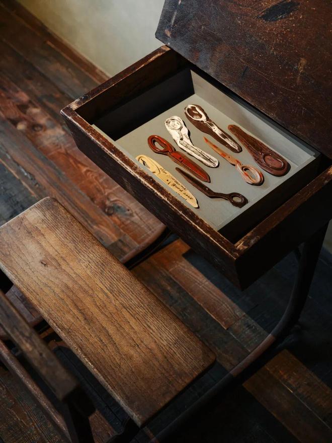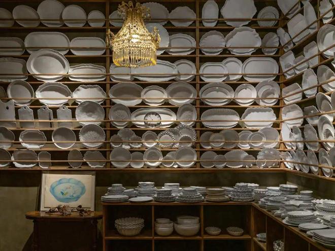 本次展览让Maison Uma Wang空间变成一个“盒子”,韩健的作品自然融入其中,共同营造出展览 的感知氛围。一层呈现韩健的陶瓷剪刀系列 、 《物品集》系列画册等,与空间中陈列的Astier de Villatte瓷器彼此呼应; 三层平日作为 Maison Uma Wang 为品牌好友与艺术家举办展览的场所,本次展示了韩健的大幅油画作品。而在阁楼的19世纪老课桌上,摆放着韩健的剪刀拓印陶瓷作品,使展览在一种生活氛围中收尾。作为家居造型师兼家居买手出身的艺术家,韩健的绘画主题跨越广泛, 从日常器物、人物特写到虚构场景、建筑,媒介涵盖油画、丙烯、铅笔画等。她往往不依循单个系列创作,而是追随个体真实 经历与生活片段,将日常观感和记忆重新组织和想象,再造为一幕幕新的特写和图景。