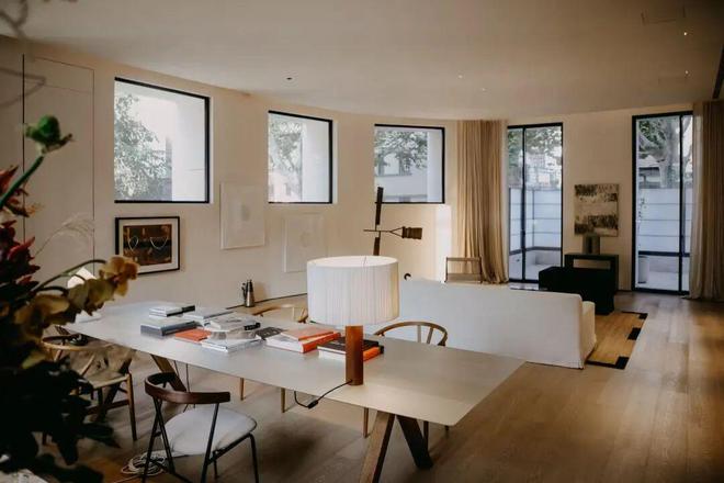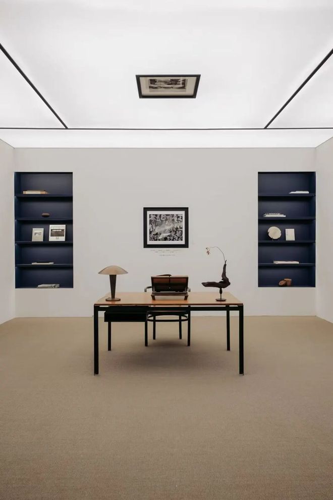 策展团队将Tobia Scarpa的⼏何精准与Alessandro Becchi的柔美曲线结合,允许Pierre Jeanneret的椅⼦在⼈体姿态的低语中安放,同时让Ingo Maurer的灯光如半句未完成的叙事般闪烁。同时,参展艺术家有迪伦.道尔、杰西.艾伦、倪志琪、卡⽶卡.嘉诺蒂以及钱宁越作品的融入也让观众得以与空间深度共处——感受⾃⼰的呼吸如何与房间节奏同步,坐下的动作如何完成椅⼦的意图,以及⾃⾝存在如何轻柔地改变空间氛围。