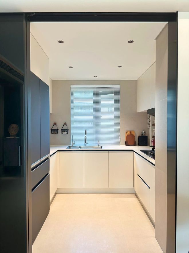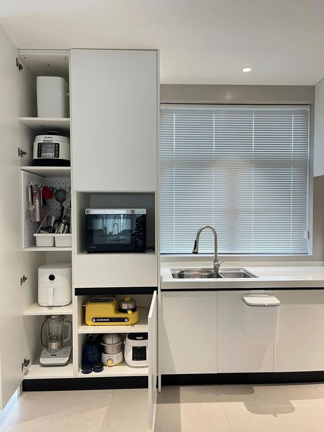 若厨房里小家电比较多,也可以通过高柜来收纳,哪怕要牺牲一点台面空间,也十分值得做一组。