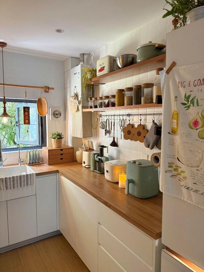 其实,厨房里藏着许多被我们忽视的“高效收纳区”,只要合理利用并规划,即便没有吊柜,收纳力也毫不逊色。具体如下:
