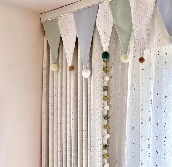 然而住友@小板栗粒 却整出了没做窗帘盒的超绝后悔药——毛球旗帜窗幔。
