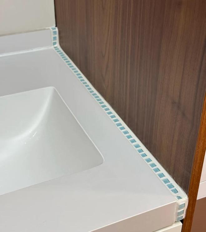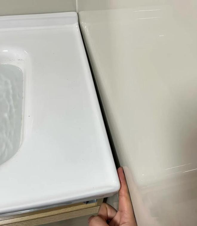 像这种两面靠墙的洗手盆,必然会出现这么一条缝!