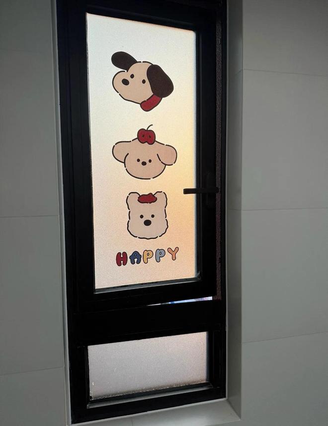 这个小狗玻璃贴,每次看到都感觉被萌到。