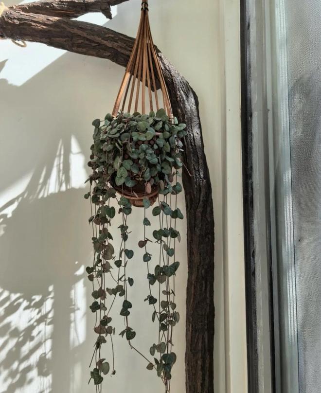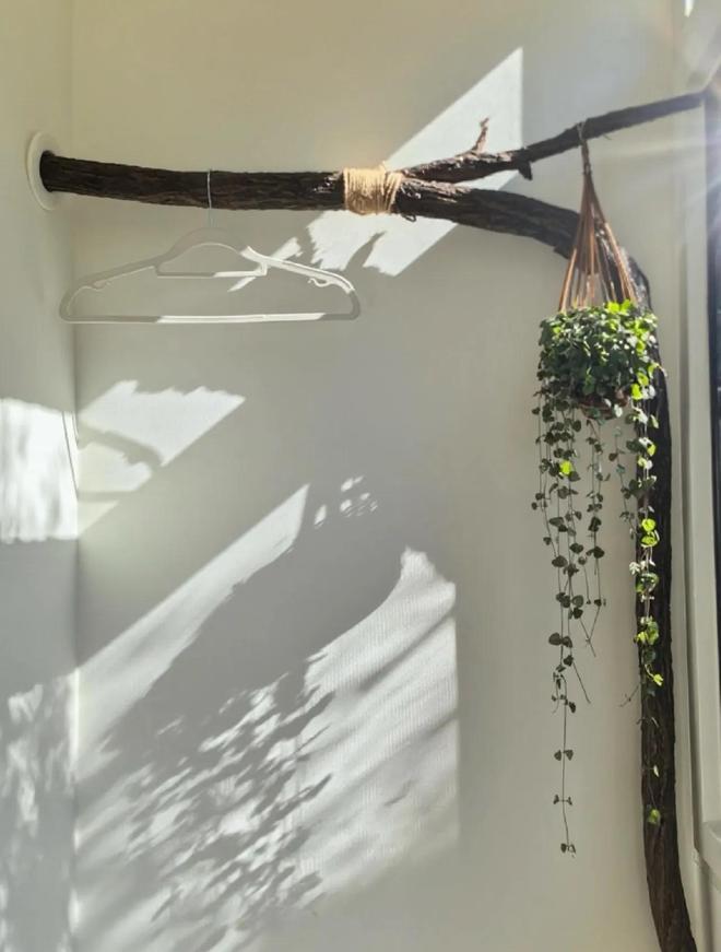 把外露的管道,给它一包,然后再来跟真的树枝,给它以假乱真,最后再来盆植物,来点生机。