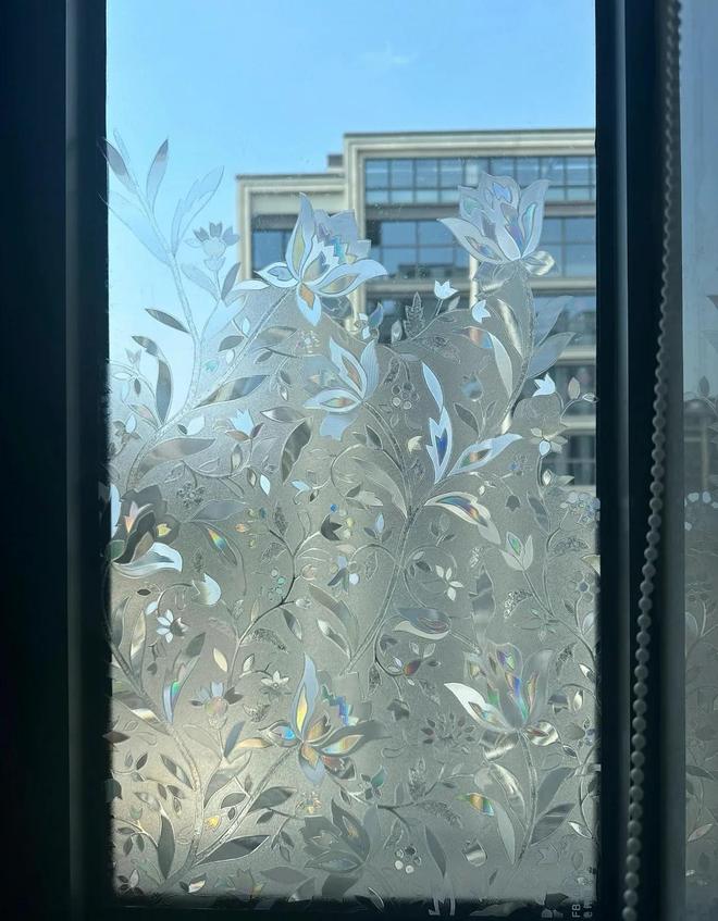 这个花卉玻璃贴,美到人想驻足的地步,关键它还既能遮挡隐私,又不影响卫生间采光。