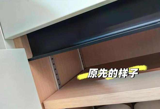 大家如果家里也有这个免拉手挡板太高,影响柜内空间的问题,也可以用这个方案,直接拆掉免拉手挡板,回家自攻丝把这个毛刷拧上去即可。