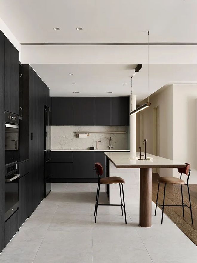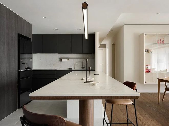 中岛基座的落地柜材质亦巧妙呼应厨房地砖
