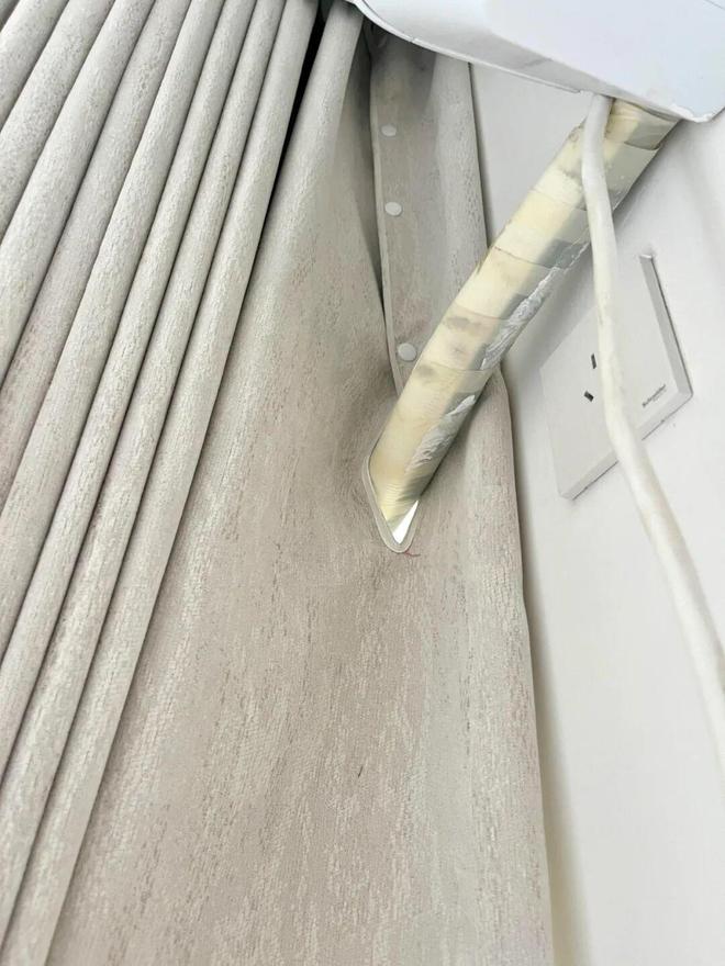 像我们在安装窗帘时,为了避免空调管把窗帘抵住,导致窗帘拉不到边出现漏光问题,一般都会给窗帘打孔。