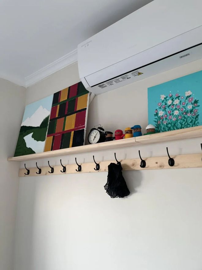 洞洞板,不仅仅是“收纳神器”,也是“遮丑神器”,如果家里裸露的空调管子比较长,也可以用它来处理。