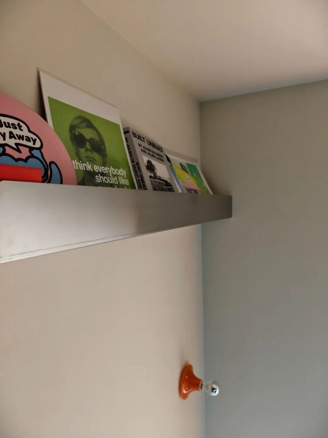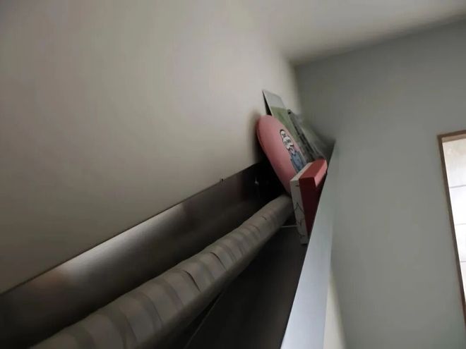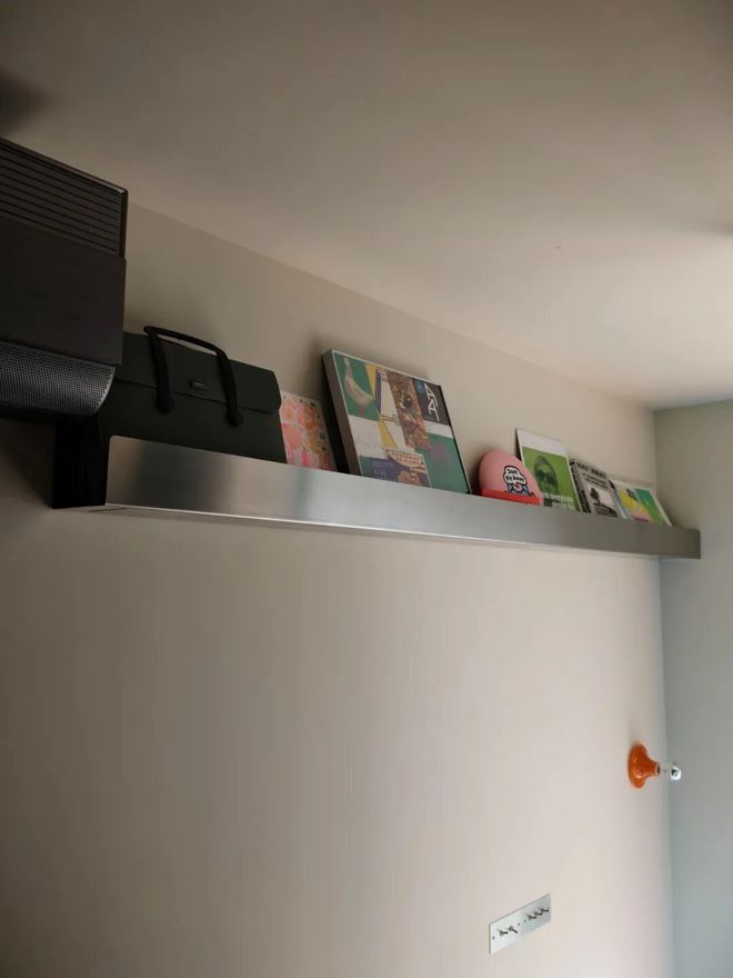 网购不锈钢层架,贴着空调管子安装上去,再摆上书籍、装饰画等物品遮挡一下,立马就变成了一个置物装饰架,并且后期还可以自己喜好随时更换物品,设计感满满。