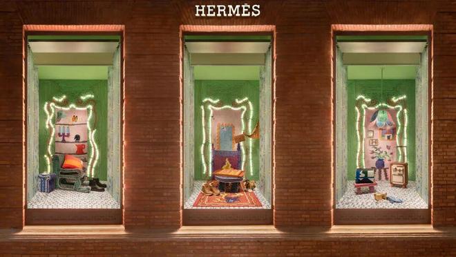 本次创作中,艺术家延续其标志性编织手法,又辅以童趣涂鸦和符号拼贴,渲染普罗旺斯的节庆意象、斑斓色彩与家的温度。男性世界橱窗邀请人们加入节日前夜的燃木仪式:火光轻曳,Samarcande迷你棋盒静候冬夜对弈;枝叶疏朗,Clic H手镯点亮起居日常。移步至餐厅,访客在女性世界橱窗的晚宴桌前落座:丝润晶透唇膏化身缤纷甜点,Tressages Equestres系列餐瓷盛放象征丰收与感恩的佳肴。帘幕之外,引导之星点亮配饰橱窗,传统节庆糕点寓意团聚与永续,为Mini Medor手提包加冕。